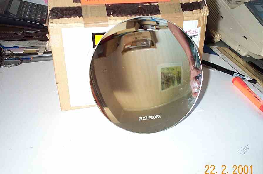 and the forth size available is: 8 1/2". This is the large body without the flair. Similar to the 7 3/4". Rushmore measures the mirror for his quotes sizes, which makes it all very confusing. The 7 3/4" and the 8 3/4" have 165mm (6 1/2") glass mirror. The new 8 1/2" and the 9 3/4" has a 180mm (7 1/8") glass mirror. The Rushmore logo is etched into the glass mirror as original. The reflector mirror is 4mm thick glass and held in by a slightly modified ring.