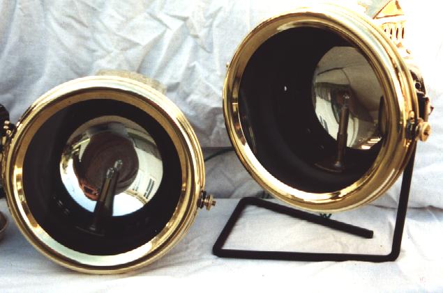 The 8 1/2" and the 9 3/4" measure 9" between the forks. These head lamps have been left as brass, nickel plated and even gold plated. Burners, and burner posts are an optional extra.